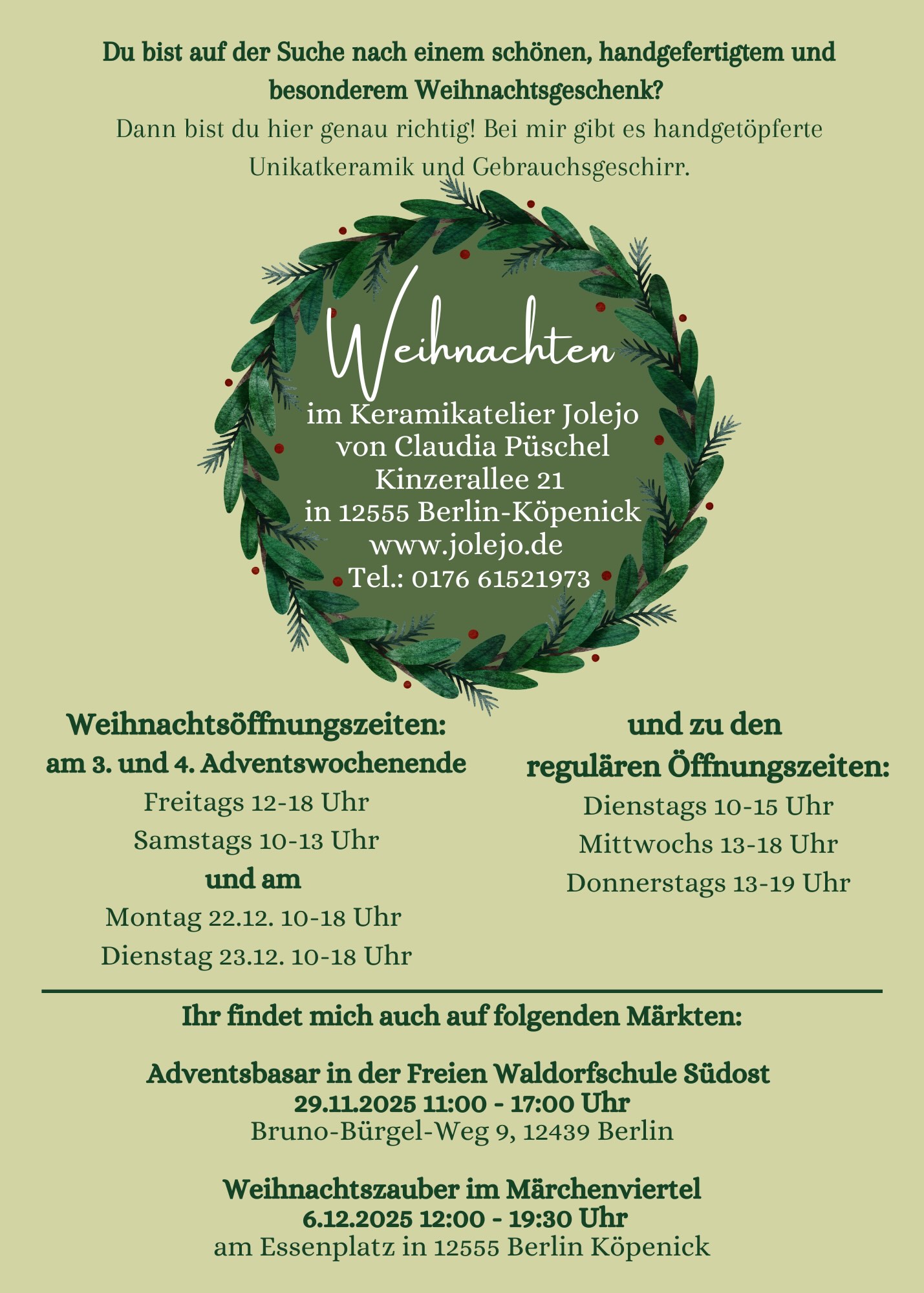 Öffnungszeiten der letzten Tage vor Weihnachten: